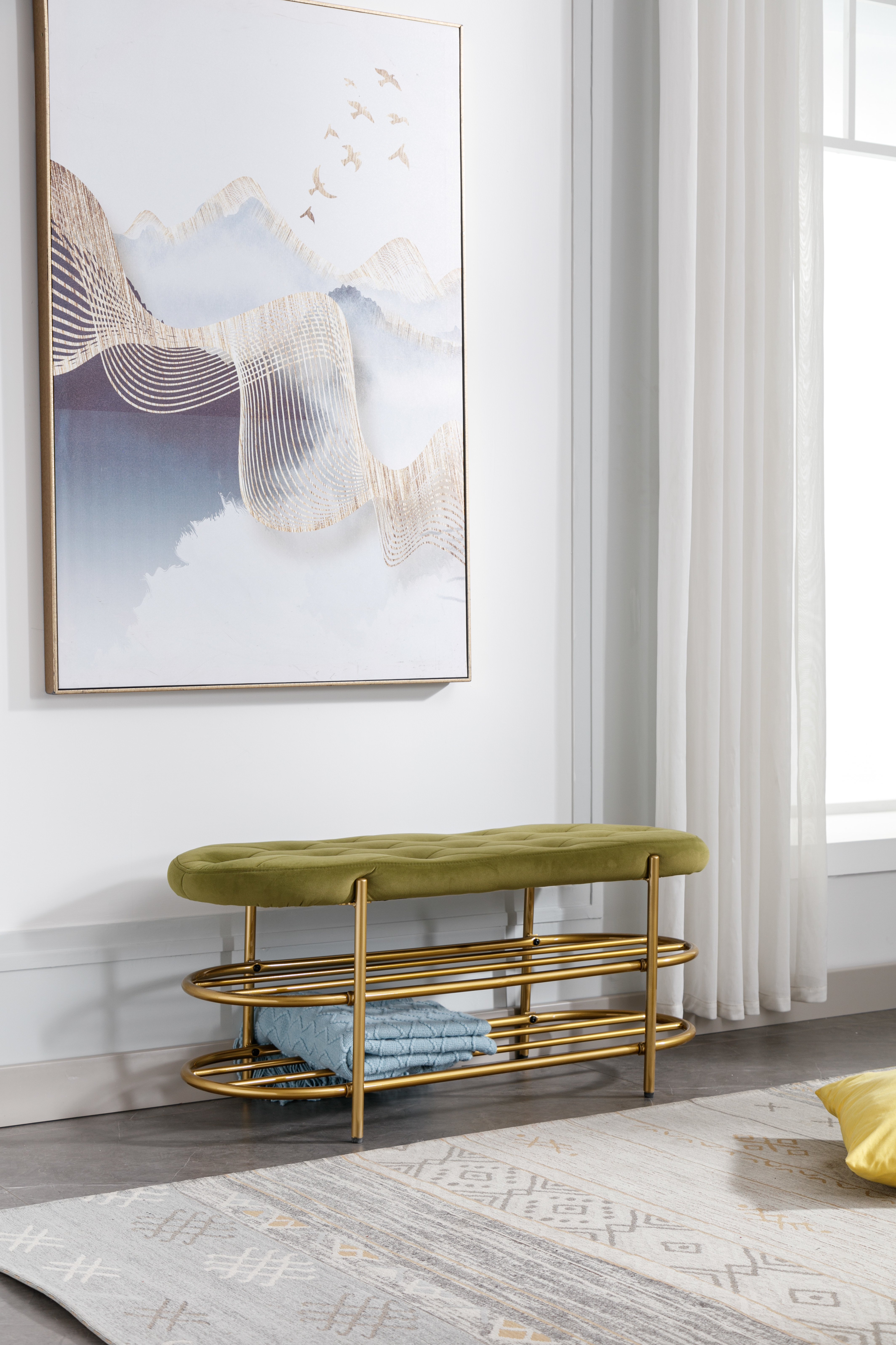 Ø Finding the right style is necessary to help bring a room together and this chic, stylish upholstered bench is the perfect addition to any living room, bedroom, or entryway. It features a beautiful elegant exterior . along with sturdy metal legs and a roomy interior that is perfect for storing extra pillows and blankets, shoes, or other clothing and accessories.
