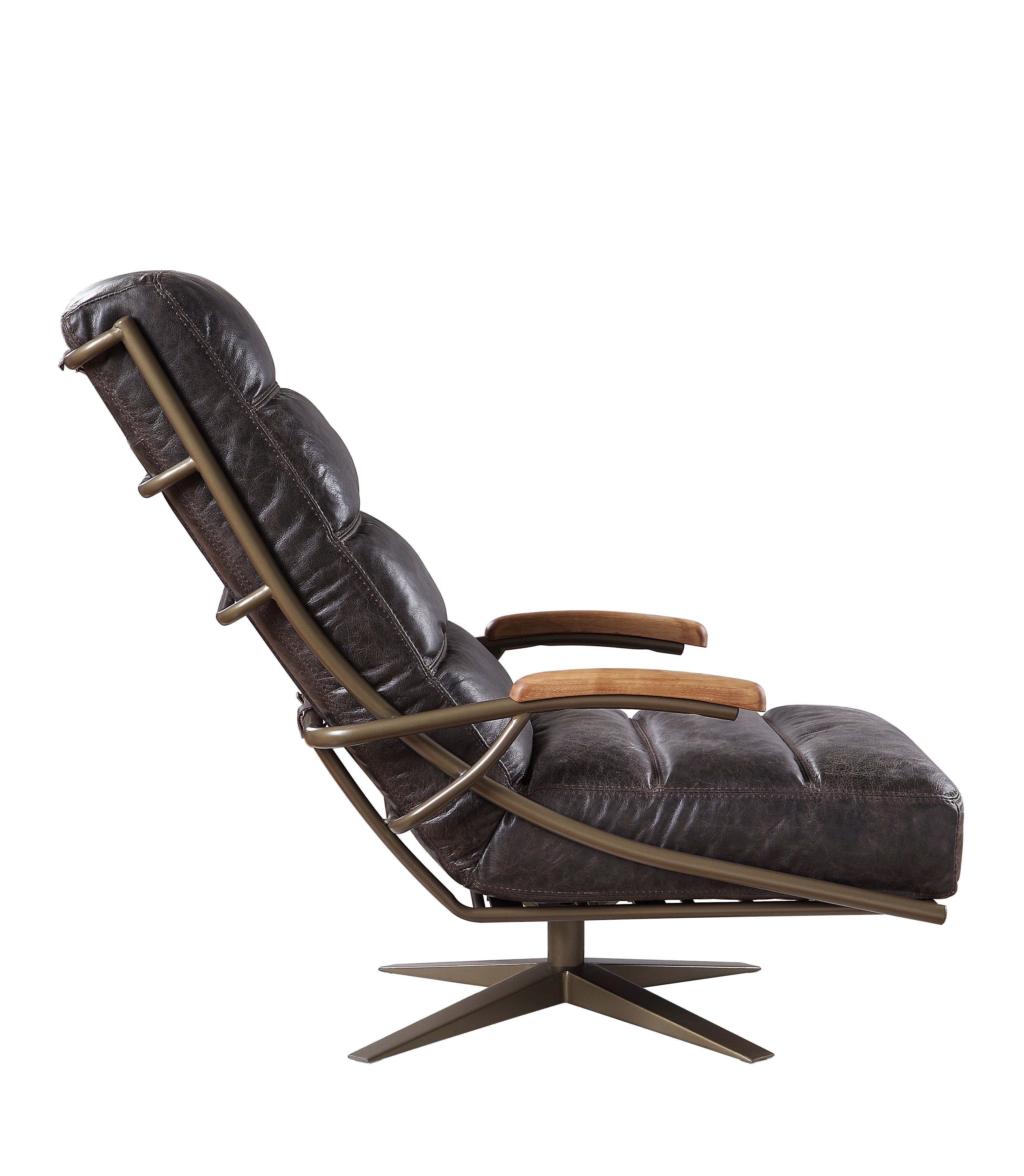 Product Details : Lounge Chair; Loose Back & Seat Cushion (1) : Horizontal Tufted; Top Grain Leather; Swivel Seat :: CONSTRUCTION :: SEAT&BACKREST: Full Foam; Horizontal Channel Tufted (Loose) : ARMREST: Metal Frame & Wood Insert : Metal Frame & 4-Star LEG; Size: 8" () ::: Material: Top Grain Leather (Vintage Pattern) : Pillow NOT Included