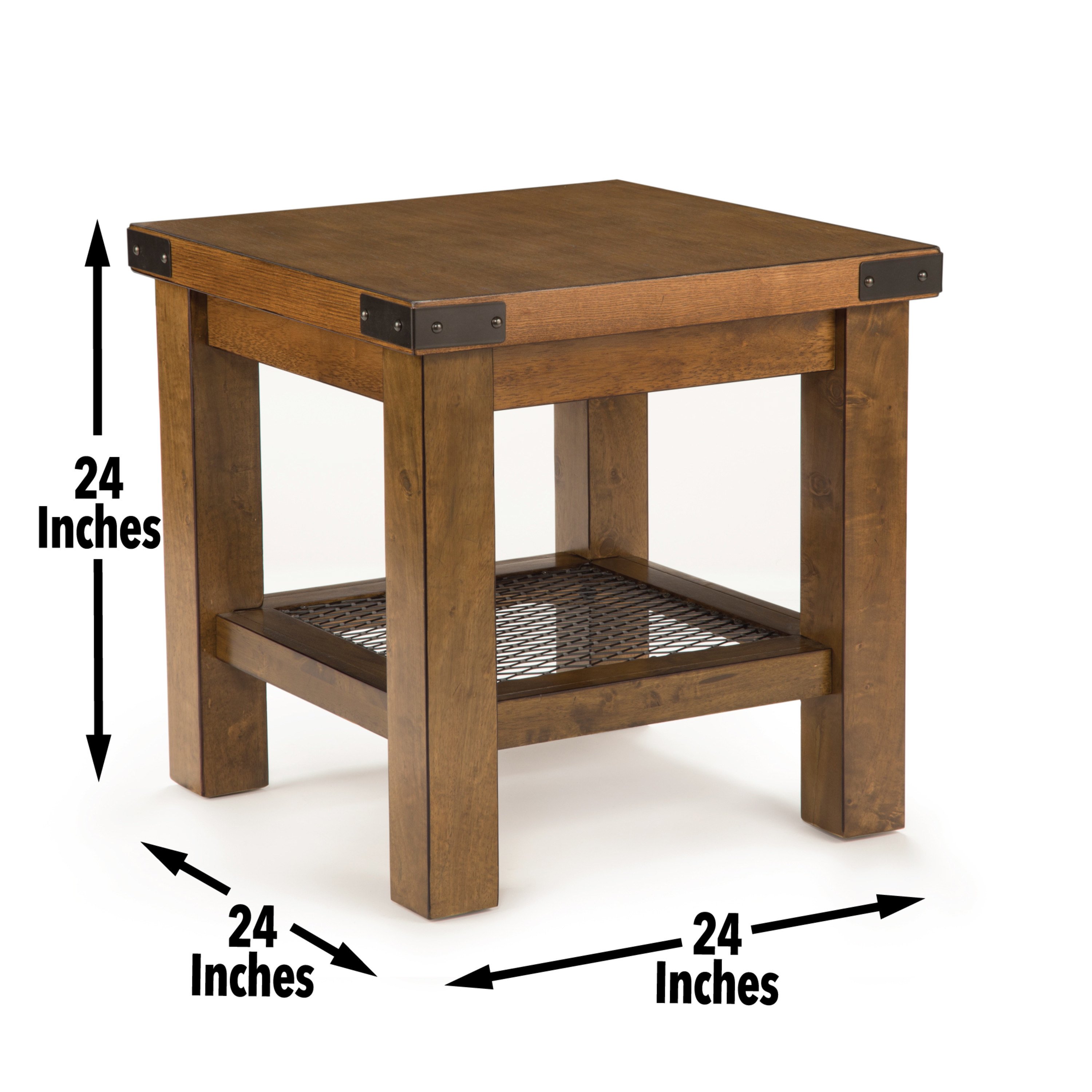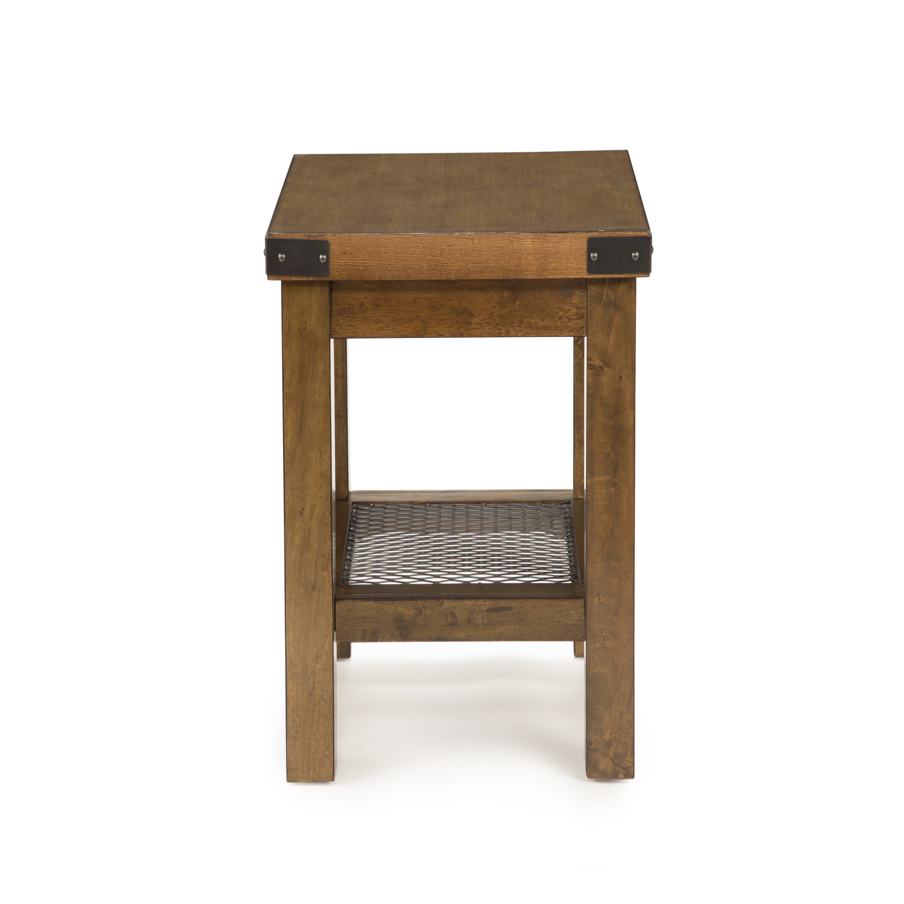 Hailee presents industrial styling designed for a city loft but comfortable in any suburban setting. The end table features an antique oak finish with hearty leg posts and metal accents that give the entire collection just the right element of mixed media charm. Pair with end or sofa table for the perfect look.