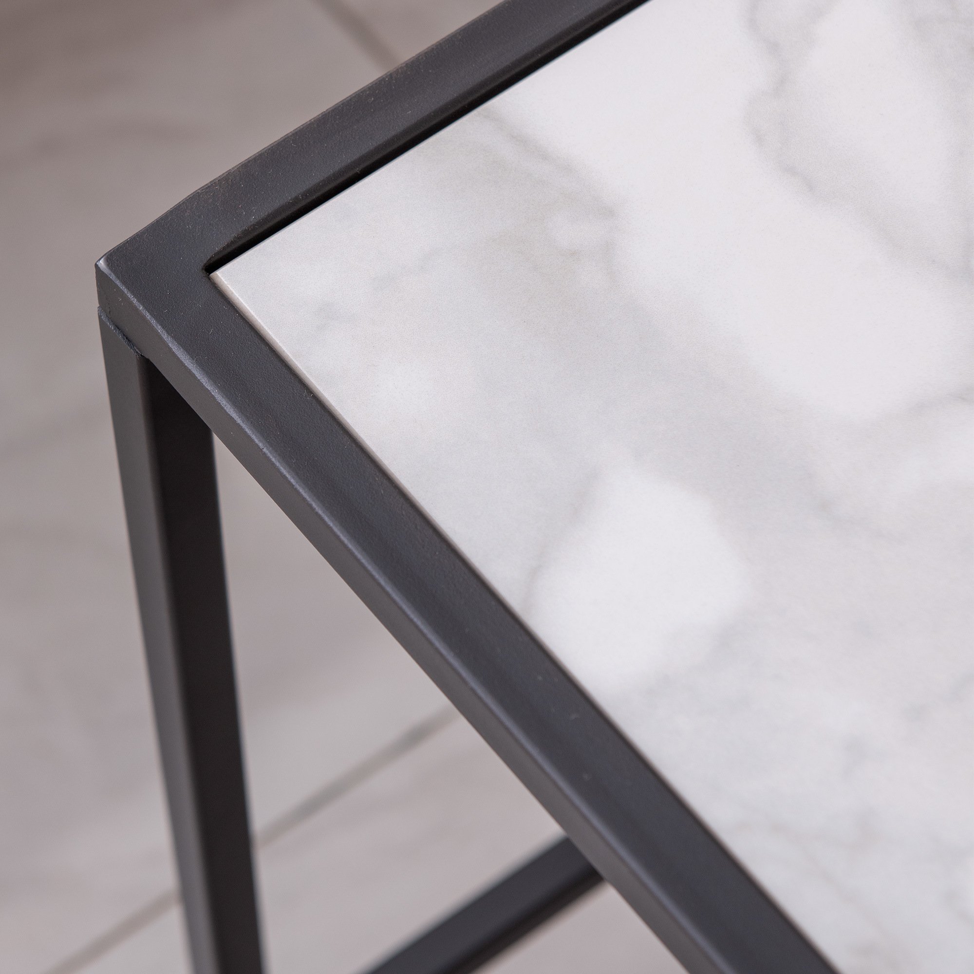 FASHION AND MODERN STYLE: With stylish design compatible well with any decor of your room, The combination of glossy snow mountain sintered stone tabletop and black metal frame makes the coffee table visually beautiful and elegant;
