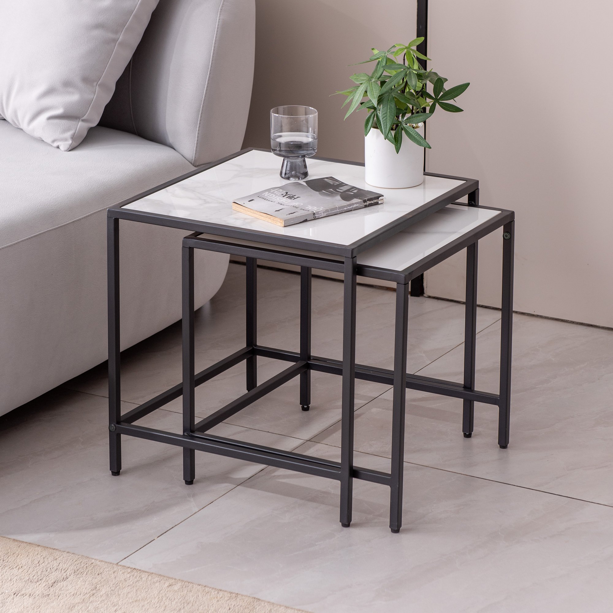 SIMPLE ASSEMBLY & EASY MAINTENANCE: It's easy to assemble it. Just align the screws on the legs with the screw holes, then tighten the screws. The nesting table is provided with smooth painting, it is very smooth and you can clean it with a soft, damp cloth.