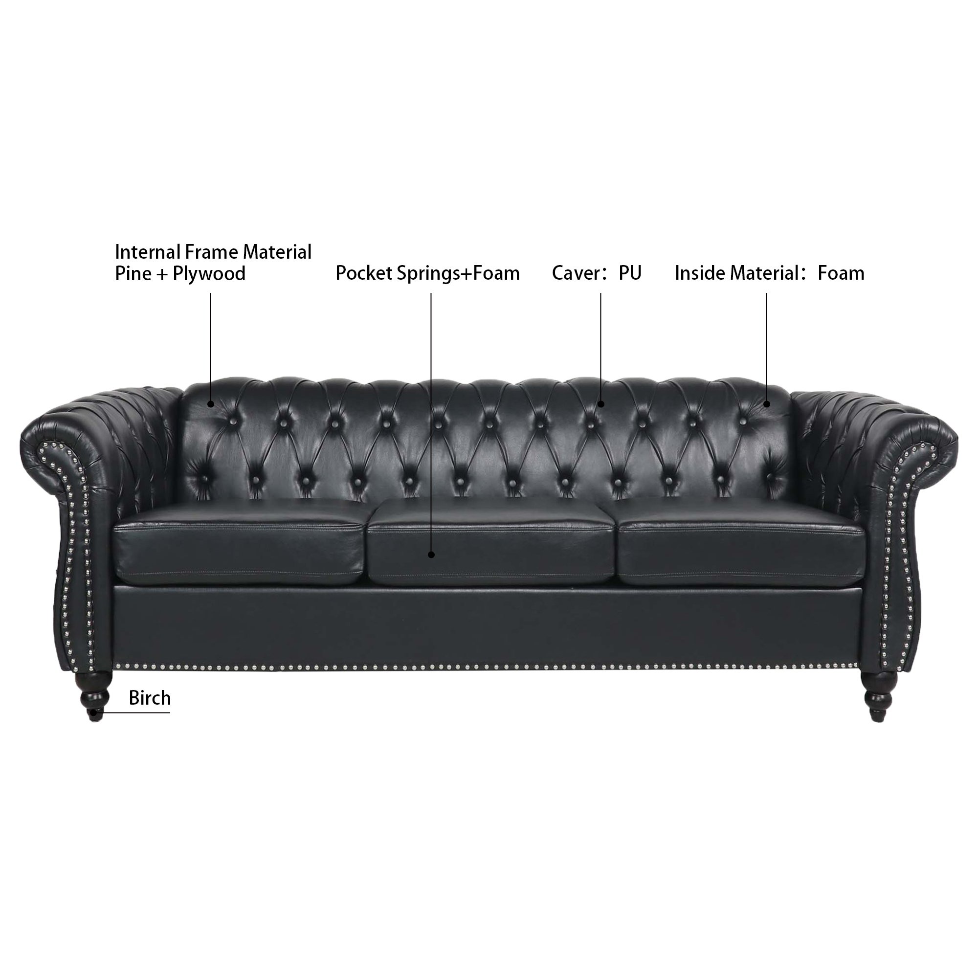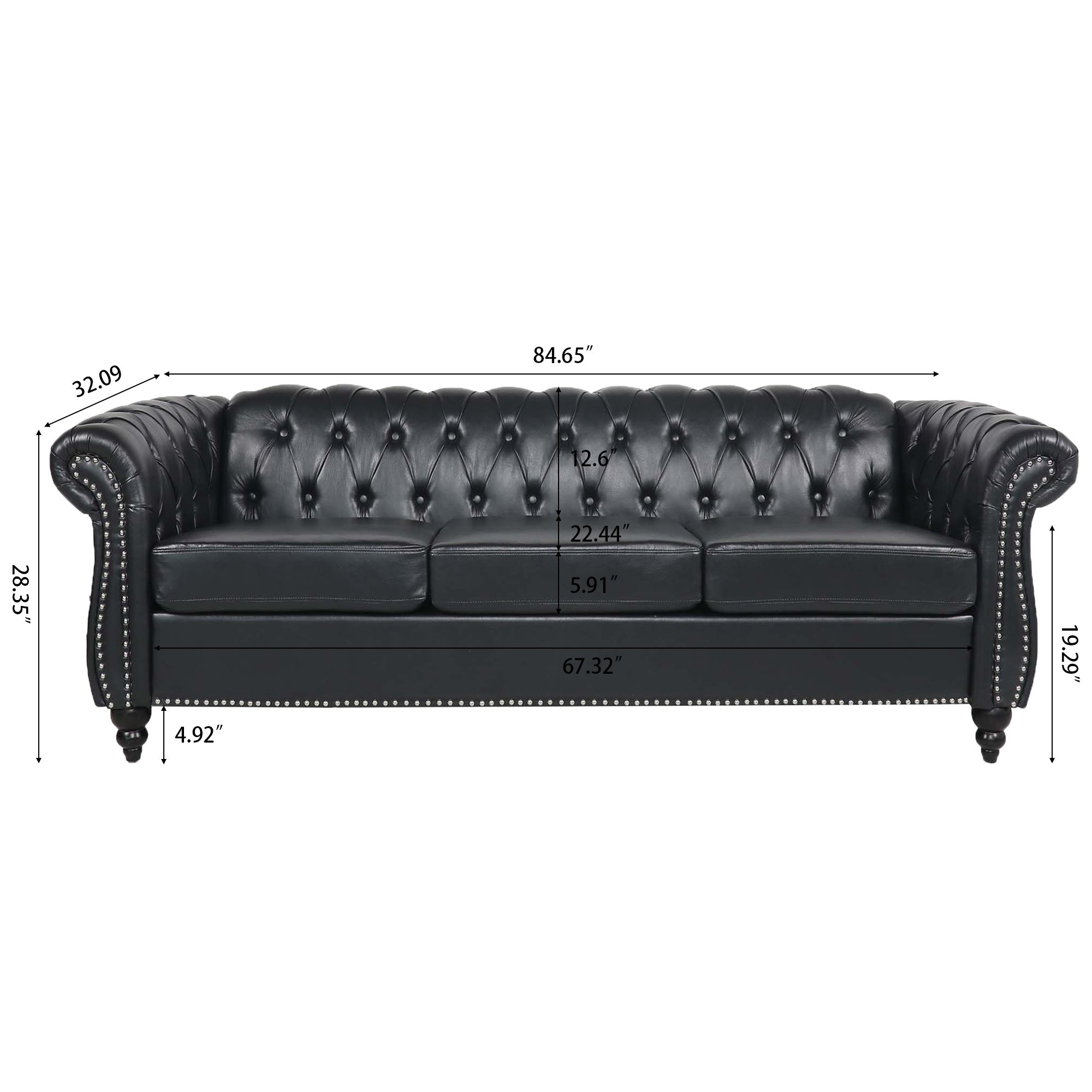 84.65" Rolled Arm Chesterfield 3 Seater Sofa.