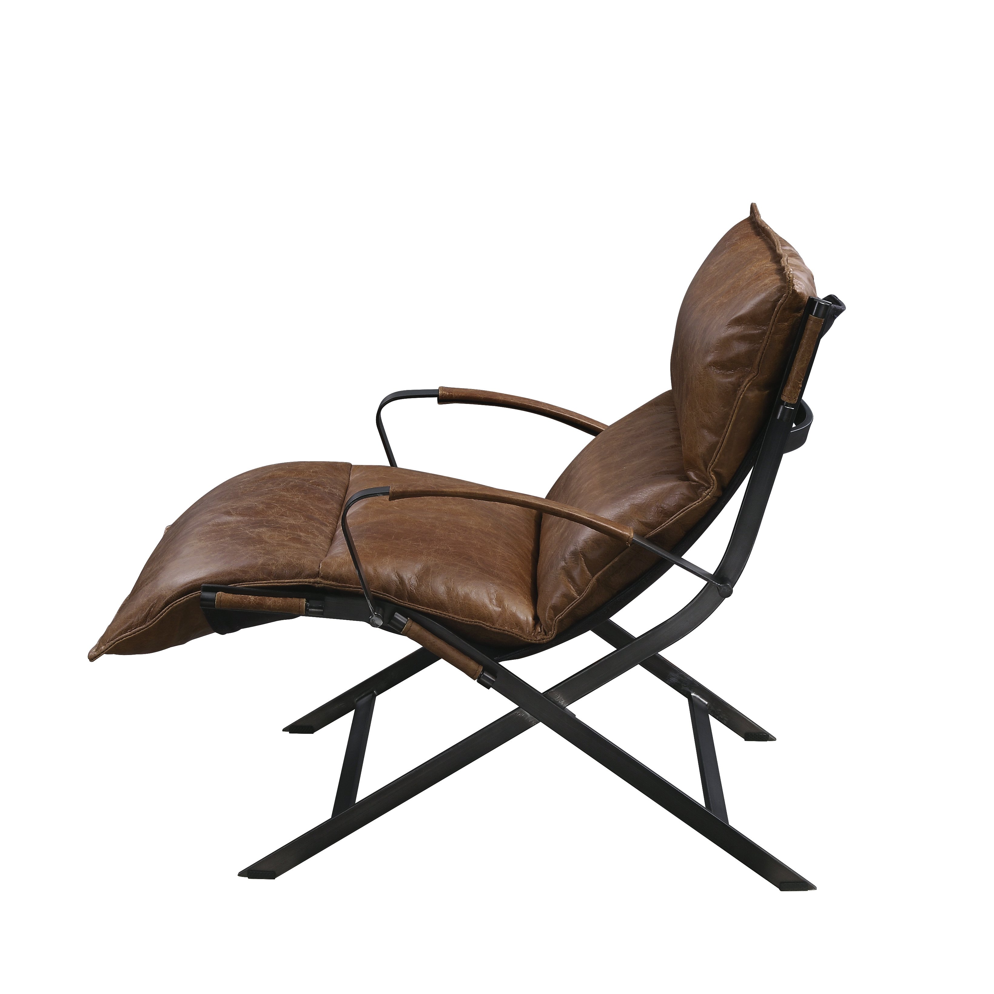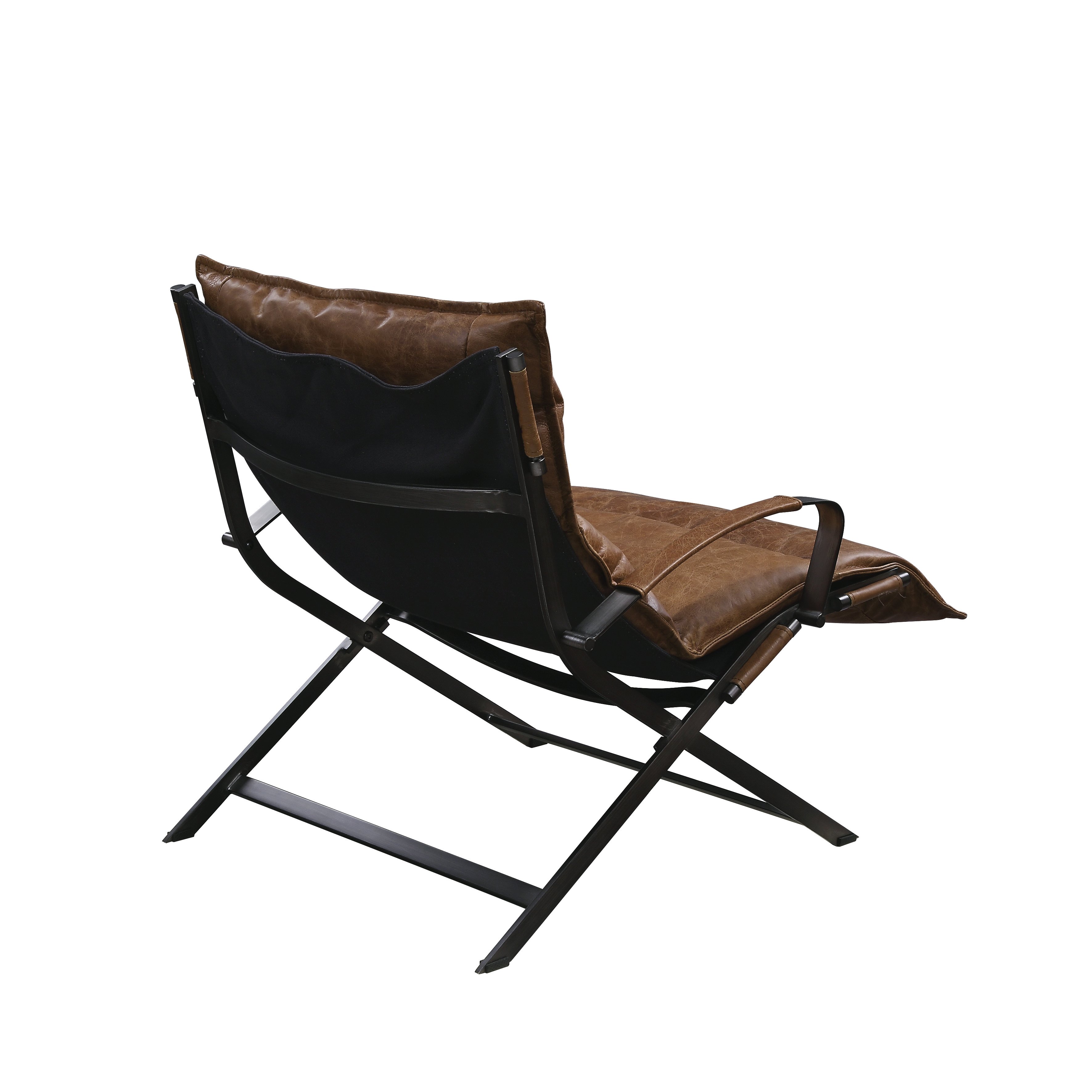 Home > Zulgaz Accent Chair in Cocoa Top Grain Leather & Matt Iron Finish 59951